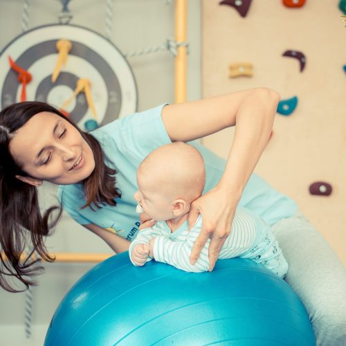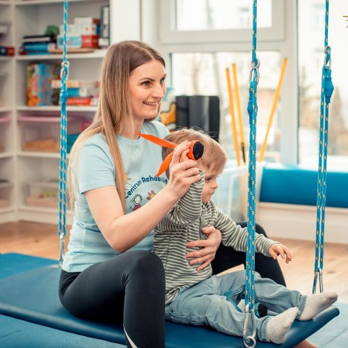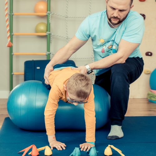 To 55 minutowe spotkanie, podczas którego skupimy się na początku na ćwiczeniach obręczy barkowej i kończyn górnych. Późniejszym etapem terapii jest rozwijanie motoryki małej, czyli zdolności manualnych dziecka i poprawa ruchów precyzyjnych.
